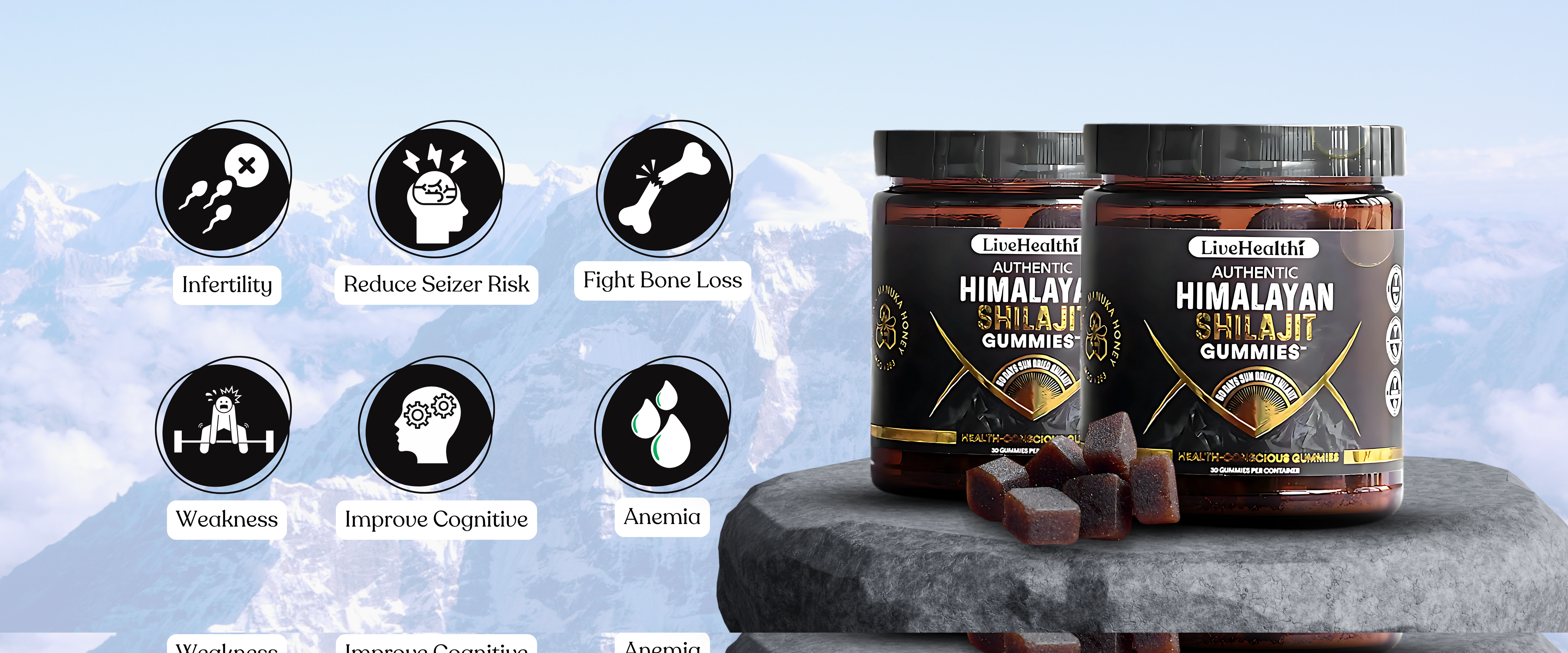 Shilajit, sourced from the Himalayas, is known to enhance fertility and energy levels. It also serves as an aphrodisiac and supports detoxification processes.